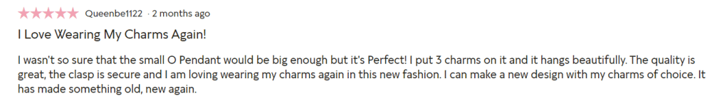 Available as a pendant in 3 colors and 3 sizes, and as a carrier, the Pandora O collection makes sure to fulfill your needs. Depending on the size the pendant can carry up to 3, 5, or 7 charms, but I’m sure it will also look enchanting without any charms. If you are truly fashion-forward, you can even use another O pendant as a charm on a Pandora O pendant. You can even put other things on it, like a ring that has been past down for generations you want to showcase.